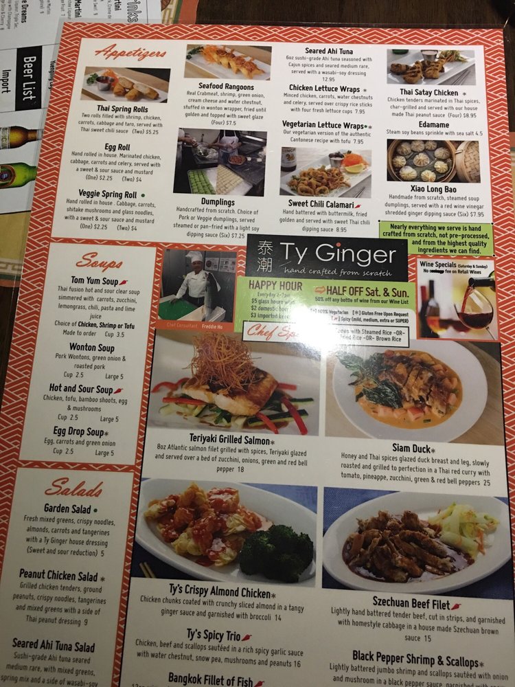 Ty Ginger Asian Bistro Menu (Update 2025)